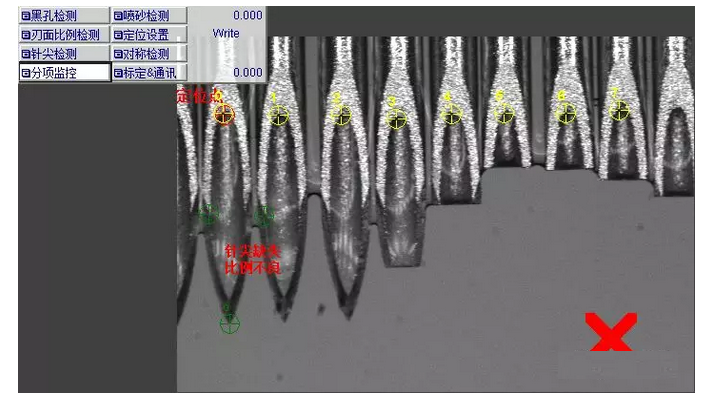 使用視覺檢測(cè)方案可以有效提高檢測(cè)效率,但傳統(tǒng)視覺方案搭載的普通工業(yè)鏡頭靶面小,檢測(cè)范圍小。要獲得準(zhǔn)確,清晰的圖像,必須要考慮拍攝的景深與視野范圍,普密斯4K變倍鏡頭檢測(cè)方案,大靶面高分辨率成像,可以清晰獲得針頭外觀及細(xì)節(jié)圖像,均勻觀察針尖各個(gè)切面??焖倥懦樇馊笔А⒈砻鎰澓?、黑點(diǎn)、歪斜、毛刺等缺陷,保證針尖各個(gè)切面光滑符合標(biāo)準(zhǔn)。